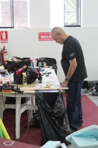 The mechanics worked hard today; as the week goes on, the chairs dwindle and creativity is needed.