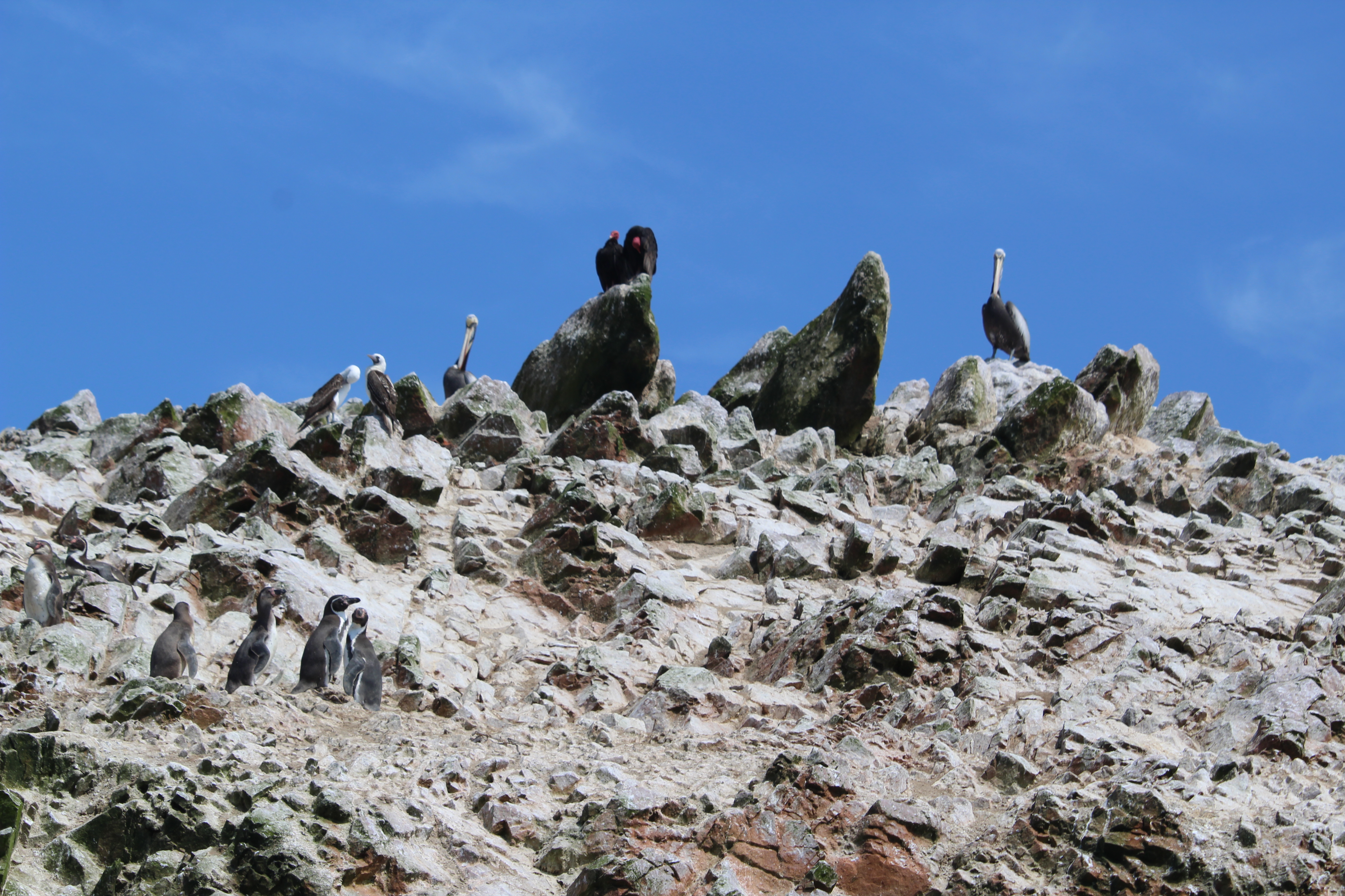 The team got an early start this morning, meeting to get on the bus at 6:30. We drove to Paracus, on the coast, for a boat tour. The tour was to some of the small islands where “guano” is harvested. Guano is bird droppings that are collected and used for fertilizer. The islands are home to numerous forms of wildlife – especially birds! We saw pelicans, cormorants, turkey vultures, sea gulls, and penguins!